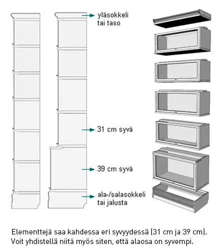 alaosassa syvempi kaappi? Yhdistele eri elementtejä ja rakenna sopiva